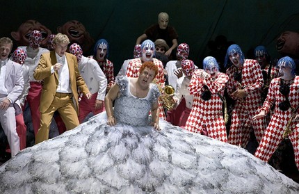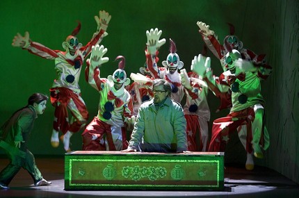 — нынешнего интенданта сего оперного дома. Его более чем эксцентричный спектакль также наделён вполне очевидными атрибутами цирка, однако отсутствие пошлости и продуманная режиссёрская композиция, заставляющая безостановочно следить за действиями героев столь популярной оперы с давно известным финалом, говорит о несомненной удаче режиссёра. Внутри беспрерывного двухчасового действия 28 июня 2015 года оказался автор этих строк.