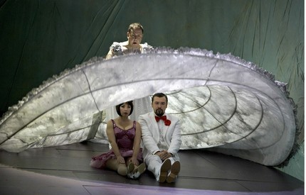 Бесконечно удачной можно назвать работу с хором (хормейстер Дэвид Кэвельюс): множество мизансценических находок и отличная слаженность коллектива создали необходимую атмосферу гротеска, циничной иронии, приводящей к фатальному исходу.