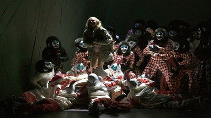 Сцена ночной грозы, когда Джильда так самоотверженно идёт на верную смерть — одна из самых напряжённых в опере. У Коски завывание ветра изображает именно группа клоунов, присевших в глубине сцены. Поверьте, смех и ужас в одном лице работают безотказно.