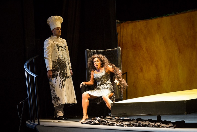 Загадкой авторы оставили только два драматургических узла – «Танец семи покрывал», о котором заранее известно, что покрывал не будет, и финал оперы, где после данных подсказок сложить дважды два немудрено. Оставим этот вопрос как риторический и введём в курс дела тех, кто ещё не присутствовал на спектакле.