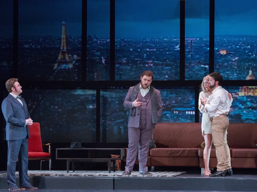 Любовное гнездышко Манон и Де Грие в первом – роскошный пентхаус в Париже с великолепным видом на город и Эйфелеву башню. И неважно, что ее строительство начнется лишь в конце следующего после событий оперы столетия и через три года после премьеры самогó этого опуса в парижской Opéra-Comique, ведь привнесенная в новый спектакль эпоха – вторая половина XX века. Отношения героев в этой картине – подкупающе искренние, а их расставание весьма пронзительно и драматично.