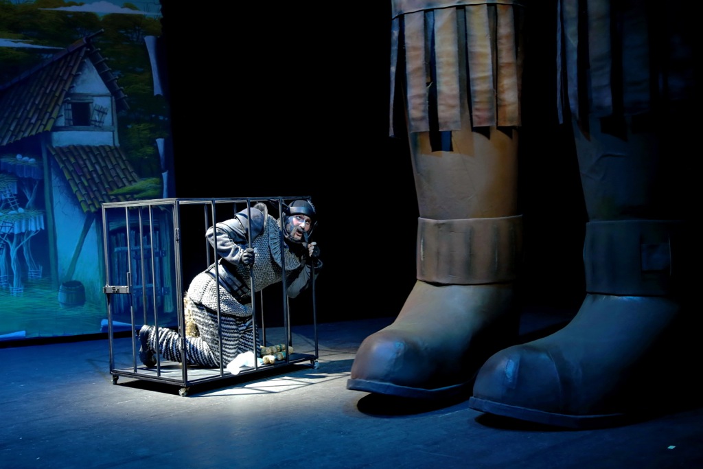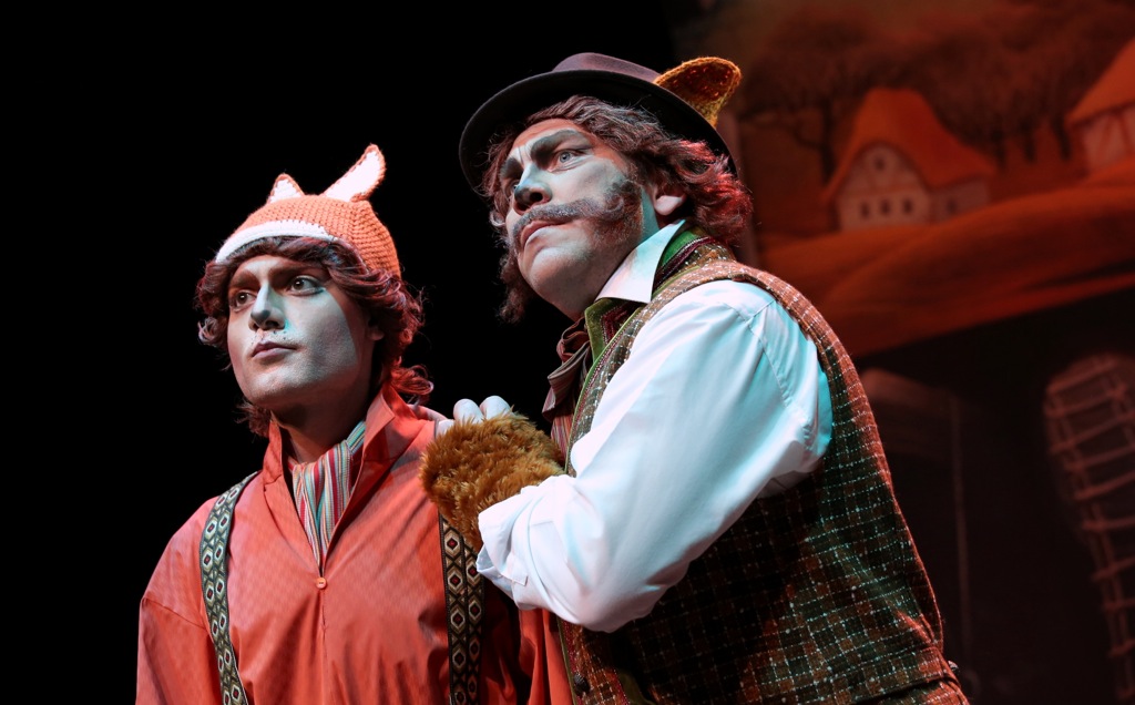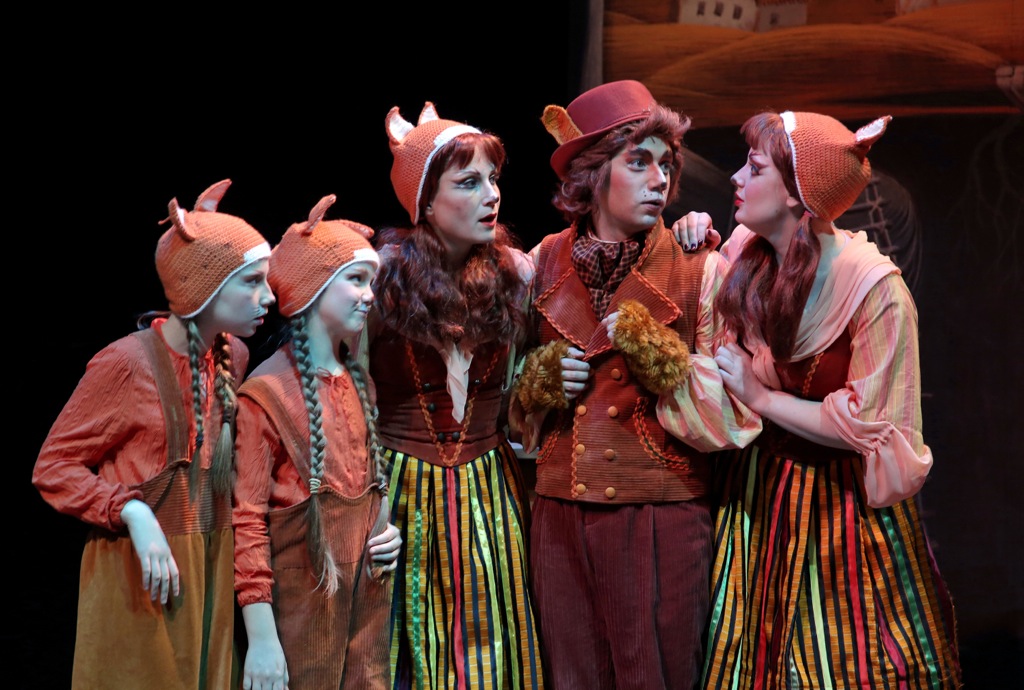 Например, для обрисовки быта лисьей семьи задействовано всё только самое необходимое: кровать, стол и буфет. На протяжении всего мюзикла в глубине сцены стоит огромная книга, страницы которой переворачиваются со сменой эпизодов и раскрывают бытовую ситуацию. Впечатляющий эффект вызывают ходящие по сцене нечеловеческих размеров сапоги, которые подвешены к тросу и изображают поступь хозяина пса Максимилиана (Тимофей Крюков).