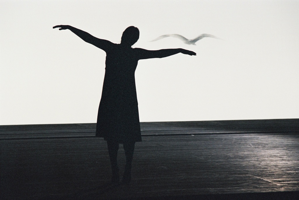 люди сталкиваются друг с другом и с самими собой. Сценическое пространство выстроено так, чтобы давить на исполнителей. Это серая деревянная клетка для погребённой заживо Катерины. Через весь спектакль проходит символ птицы. Когда Катя топится, обретая свободу в смерти, белая птица «оживает» и медленно улетает.