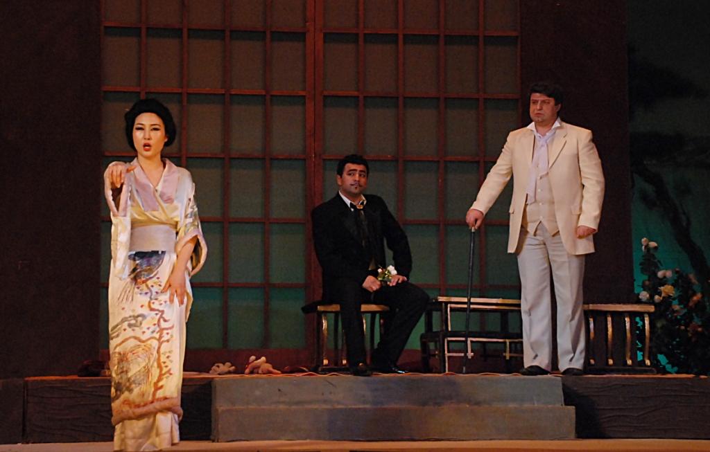 В своё время, эти «мхатовские» паузы поразили Пуччини в драматических спектаклях, которые он гениально «перенёс» и в свои оперные. Под мягкое сумрачное пение женского хора с закрытым ртом (хормейстер — Севиль Гаджиева) с «бликами» деревянных духовых и pizziсato струнных, всю ночь Чио-Чио-сан терпеливо ждёт мужа. Или последняя сцена: словно прощальный взмах «крыльев» — рукав кимоно, Японская бабочка наносит себе смертельный удар кинжалом.