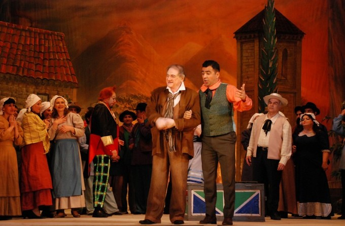 Постановку «Паяцев» Р. Леонкавалло на сцене Азербайджанского государственного академического театра оперы и балета можно назвать удачной по многим параметрам. Во-первых, никаких минималистических (а порой абсурдных) сценографических решений, весьма характерных для современной режиссёрской оперы. Всё узнаваемо и традиционно: тот же апробированный классический приём удвоенного театра — «театра в театре», когда в кульминации стирается грань, отделяющая жизнь от искусства, а дешёвый балаган бродячих артистов преобразуется в подлинную трагедию разыгрываемую, пользуясь современной терминологией, в режиме online перед «двойным» составом зрителей, — в зале и на сцене.