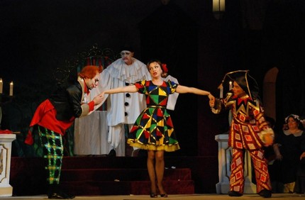 Украинское сопрано Екатерина Стращенко в костюме Жизели в первом акте (в корсете и в юбочку со знаменитыми полосками по низу подола) и в традиционном костюме Коломбины — во втором, по внешним параметрам соответствовала своей героине (первой красавицы в труппе и королеве красоты в заезжей деревушке). Да и к вокальной линии особых претензий не было. Однако не хватало эмоциональной насыщенности, которая бы убеждала и в знаменитой «Ballatella», и в дуэте влюблённых.