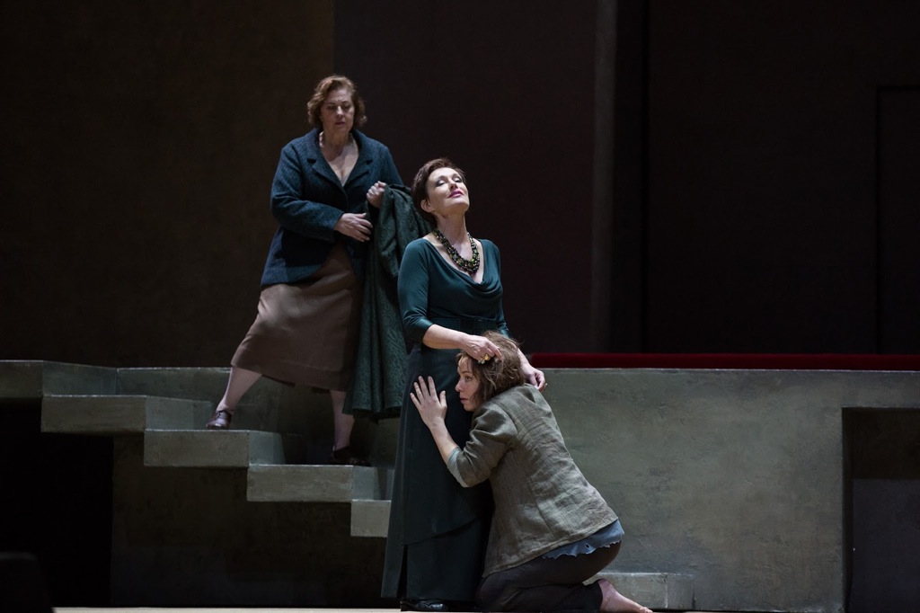 В этой постановке Клитемнестра в исполнении непревзойденной немецкой супердивы Вальтрауд Майер – достойнейшая соперница своей дочери Электры. С ней у Клитемнестры в опере – всего лишь один эпизод-дуэт, но какая изощренно утонченная, интеллектуальная игра идет между ними! Внешних проявлений их противостояния немного, но мимика певиц-актрис, интонации и пластика передают накал взаимного антагонизма настолько глубоко, что эта сцена становится главной (центральной) кульминацией оперы. Еще одну (предварительную) кульминацию обозначает взрыв в отношениях между Электрой и Хризофемидой, и канадка Адриана Печёнка – еще один важный, на редкость харизматичный игрок в этой ужасной семейной драме. В этом проекте чрезвычайно сильная тройка женских персонажей, прежде всего, и обращает на себя внимание: артистические типажи, голоса и характеры просто идеальны – как на подбор!