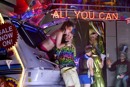 Говоря о серьезном на языке комикса, спектакль Биейто остросоциальную подоплеку, хотя де-юре она в нем присутствует, де-факто теряет. Эпатаж Биейто применительно к щекотливой теме, заданной Брехтом – Вайлем, неожиданно предстает чередой визуально-провокационных, но очень ярких вариаций. Возобновление этого сезона пытается идти и в ногу со временем, и кризис в Махагони (один из эпизодов оперы) даже робко переносит на нынешний кризис в Европе, связанный с недавним «Брекситом» – референдумом в Великобритании, сказавшим «да» выходу страны их Европейского союза. Так случилось, что состоялся он 23 июня, то есть накануне первого спектакля антверпенской серии: с 24 июня по 5 июля прошли 6 представлений, и автору этих строк удалось посетить 4-е и 5-е.