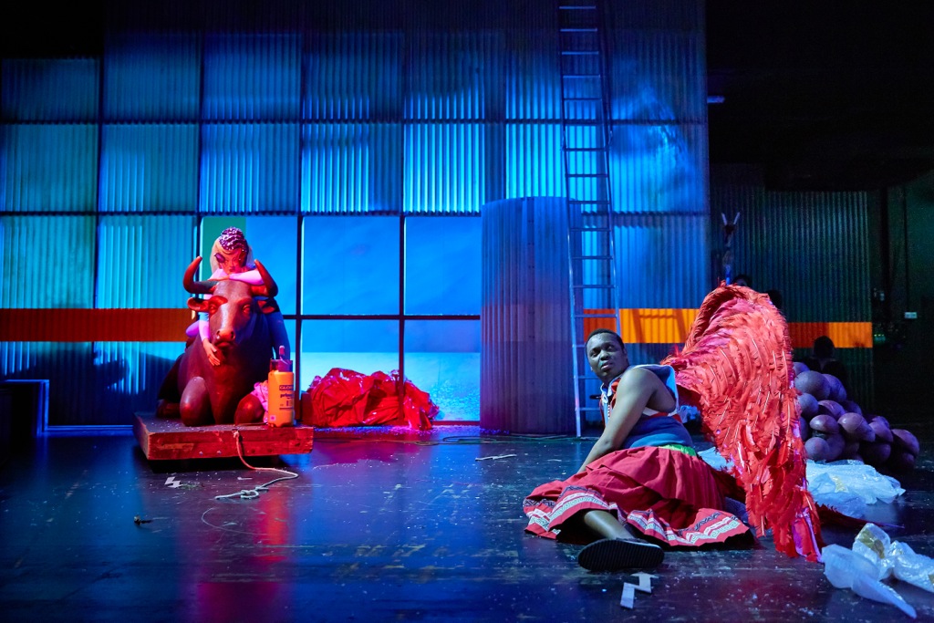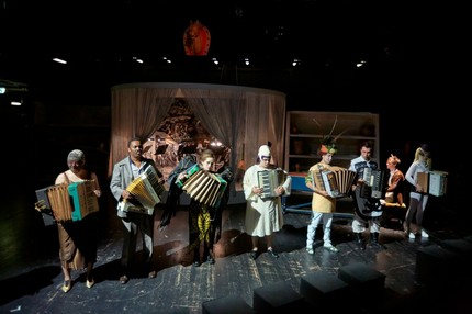 Во время спектакля ели цветы, чернобородые мужики гребли костями, зачитывались тексты Кокто, доили корову.