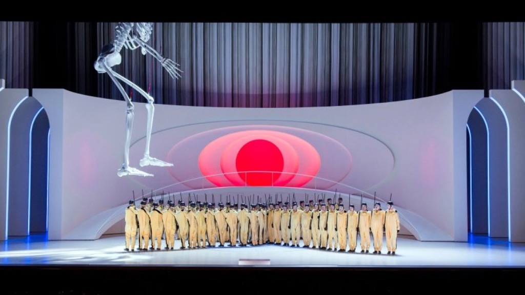 Гигантский бутафорский скелет, спускающийся с колосников в III акте, тоже смертельно чистый.