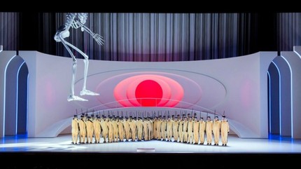 Вспоминая о байройтском «Лоэнгрине», можно поиграть в игру «угадайте, во что одет хор». В качестве подсказки знатокам можно напомнить мюнхенскую «Манон Леско» того же Ноэнфельса с костюмами, правда, другого гения сценического дизайна — Андреи Шмидт-Футтерер. Правильно: хор одет в клоунские комбинезоны. Причем, без разбора — хор это студентов, селян, прихожан, ангелов или солдат — все в одинаковом.