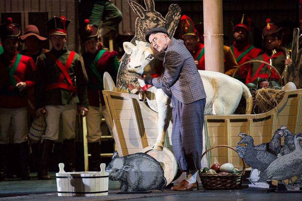 Кукольно-пряничный городок внутри оперы кажется удачным компромиссом, ведь он не затрагивает «охранительные» чувства не желающих видеть «каверканье» оперы, и при этом элемент игры в аллюзии и иллюзии не даёт заскучать и остальным.