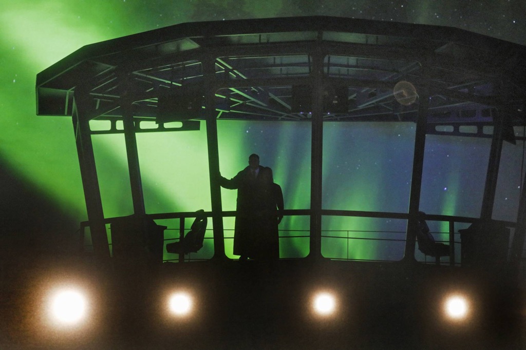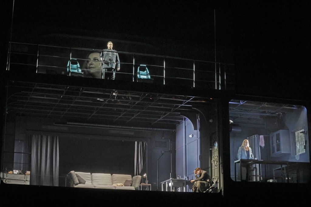 но на сей раз вопросов, как всё происходит в театре и насколько это захватывающе с точки зрения зрителя театрального, при кинопросмотре возникало слишком много. Особенно – в первом акте на корабле, на котором Тристан везет ирландскую принцессу Изольду, добытую им в качестве невесты для своего дяди, корнуоллского Короля Марка. Сценография акта – многоярусная матрица сообщающихся ячеек-отсеков, и крупные кинопланы открывают то одну ячейку, то другую, «закрывая» остальные. Отсюда и вопрос: что же видит зритель из десятого ряда партера в театре?