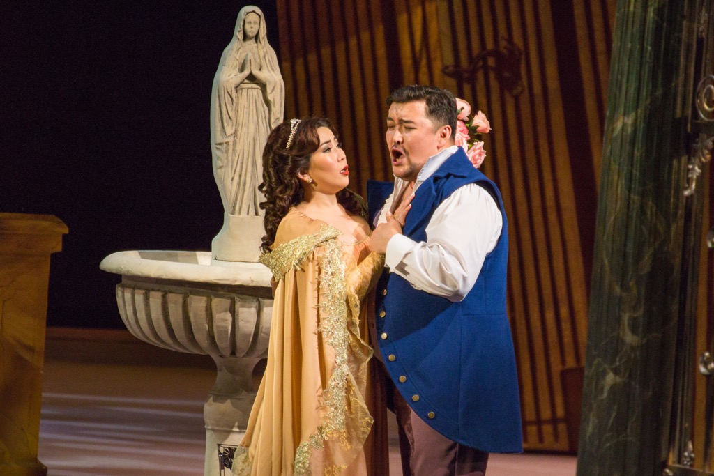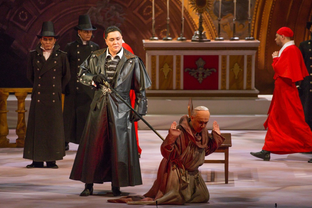 Когда-то и партия Тоски была одной из коронных в репертуаре певицы, а сегодня в новой — поистине грандиозной и содержательно вдумчивой — постановке этой оперы, осуществленной Юрием Лаптевым, выходит уже новое поколение исполнителей. Ее премьера состоялась на сцене Бурятского театра оперы и балета в позапрошлом сезоне (2 апреля 2015 года). Драматургически минорная, но при этом «эстетически лучезарная», театрально-зрелищная и, на первый взгляд, вполне обычная новая постановка необычна уже тем, что на фоне унылого засилья режиссерских экспериментов – редко когда по-настоящему достойных и интересных –