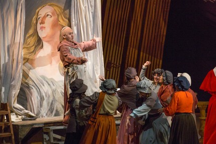 Режиссер этой постановки — реалист, очень внимательно относящийся к деталям, к действенности и осмысленности выстраиваемых им мизансцен, к пластическому рисунку образов, создаваемых певцами-актерами. Его коллега по постановочному цеху также стоит на позициях реализма, но к документальной историчности воспроизведения сценографии и костюмов вовсе не стремится.