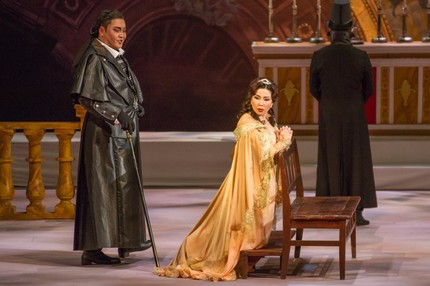 Технически выверенная и эмоционально-чувственная трактовка молитвы Тоски во втором акте вопросов к певице не вызывает: дело вовсе не в этом номере-шлягере, а в ансамблевых драматически насыщенных эпизодах.