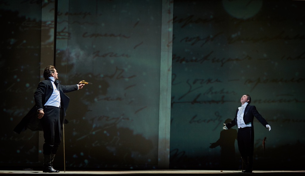 Постановка Михаила Панджавидзе принципиально традиционна. Режиссер считает, что эта опера и не должна становиться поводом для экспериментов. Поэтому в его спектакле нет дам в мини, нет алкогольного угара — того, чем грешат, к примеру, немецкие версии «Онегина». Постановка в определенном смысле хрестоматийна: мизансцены легко читаются — они словно иллюстрации из любимых изданий романа, герои абсолютно правдиво выведены из пушкинского текста и музыки Чайковского.