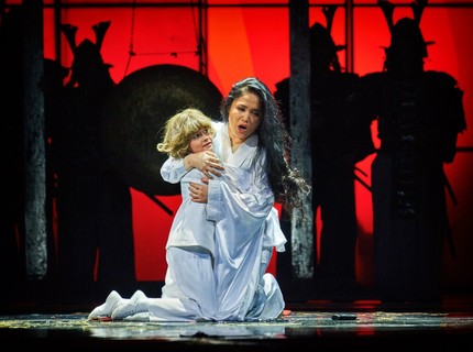 Пуччини надежно защитил «Мадам Баттерфляй» от спонтанных режиссерских поступков. Морским узлом он привязал свою оперу к определенному месту и времени действия. Круг тем его сочинения очень компактен: жертвенная трагическая любовь хрупкой восточной девочки, противопоставление Запада и Востока. До явления его прекрасной японки в 1904 году оперный мир познакомился с другими восточными красавицами — «Мадам Хризантемой» Мессаже, «Ирис» Масканьи.