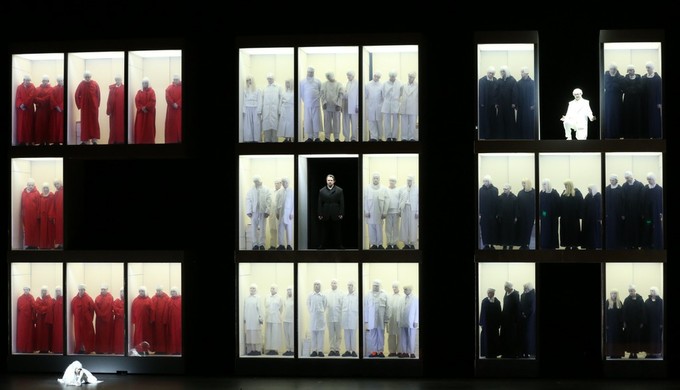 До безразличной холодности сдержанное цветовое решение, правильная геометрия декораций и предметный минимализм диаметрально противоположны экстатической яркости и многоцветной изобразительной экспрессии музыки.