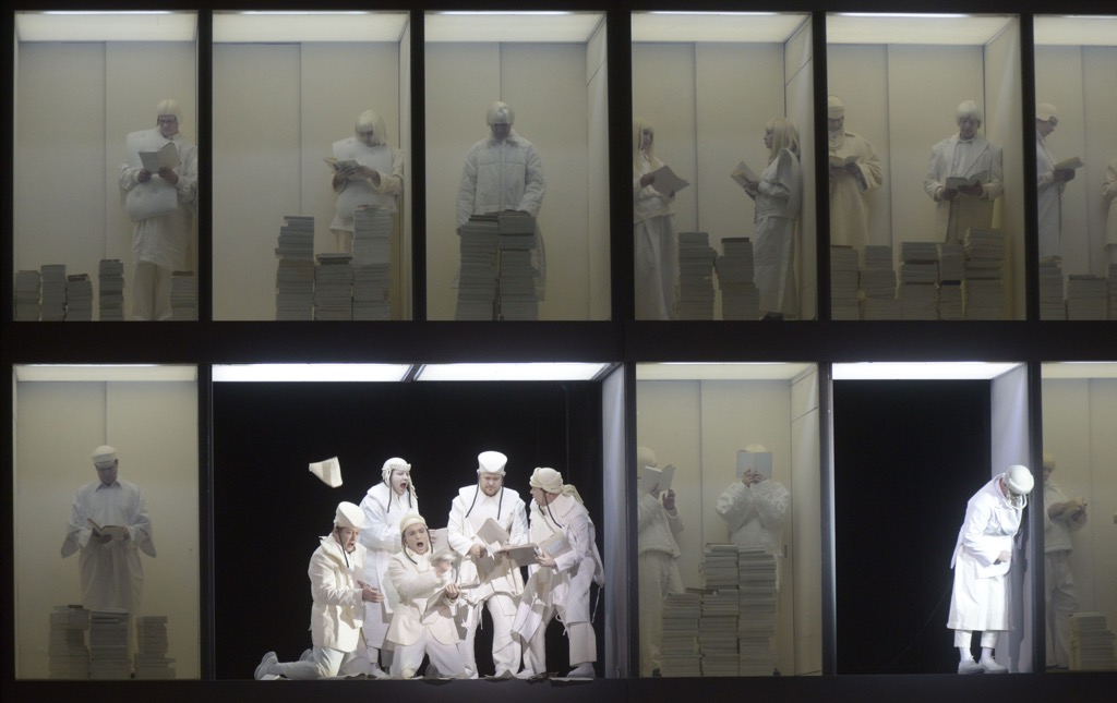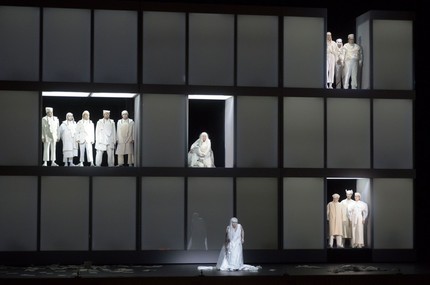 Исполнение центральных партий этой оперы требует от голосов марафонской выносливости и силы, но, даже при их наличии у постановщика всегда есть необходимость организовать сцены таким образом, чтобы по возможности помочь певцам пробиться через запредельную плотность и насыщенность огромного оркестра. Здесь эта проблема решается тем, что