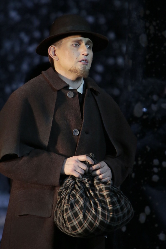 Самая пронзительная его сцена приходится на финал: в темноте сцены он остается с Рогожиным под светом прожектора, и Волков произносит «зябко» на высоких нотах пиано так искусно, что трепет чувствует весь зал.