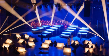 Сценическое пространство освоено логично, красиво и удобно для поющих артистов.