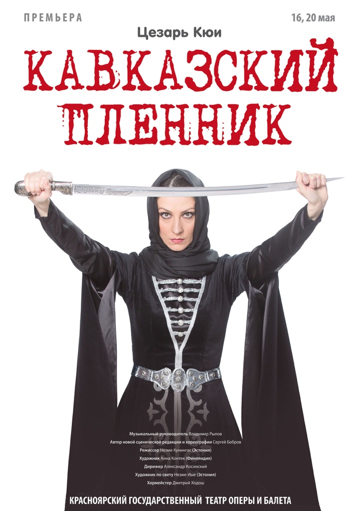 Красноярский театр оперы и балета 16 и 20 мая представляет премьеру оперы Цезаря Кюи «Кавказский пленник» по произведениям А. Пушкина, М. Лермонтова и Л. Толстого.