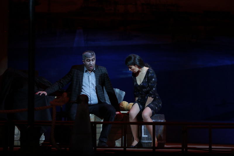 Подстать нетривиальной постановке было и вокальное исполнение. Замечательно смотрелось трио исполнителей: Афаг Аббасова (Жоржетта), Фарид Алиев (Луиджи) и Джахангир Гурбанов (Микеле).