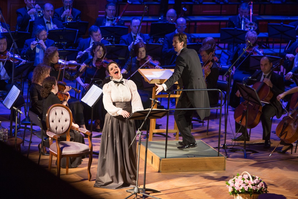 представленном на сцене Токийского Orchard Hall (один из ее партнеров по этой постановке — итальянец Бруно Пратико — был приглашен сейчас и в московское концертное исполнение; помимо него тогда участвовали тенор Хуан Диего Флорес, сопрано Стефания Бонфанделли, дирижер Бруно Кампанелла).