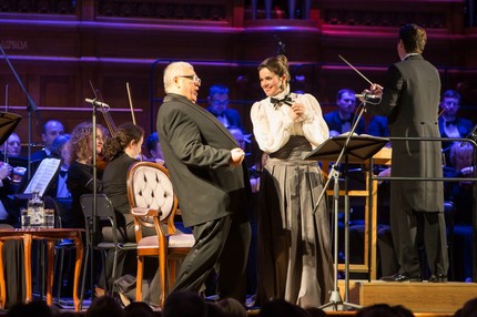 Дирижер Денис Власенко и Московский камерный оркестр «Musica Viva» показали упругое, аккуратное звучание, продуманную динамику. Может, для оперы 1840 года свойственный этому коллективу несколько скуповатый, строгий звук кому-то покажется слишком «неромантичным», однако именно такая организация звука помогла не скатиться в «оперетку» (такого рода риск в жизнерадостном материале оперы все-таки заложен, и в стенах консерватории важно остаться в рамках хорошего вкуса). За счет оркестровой фактуры и опера в целом выглядела как дорогая серебряная филигрань, а не как легкомысленная бижутерия.
