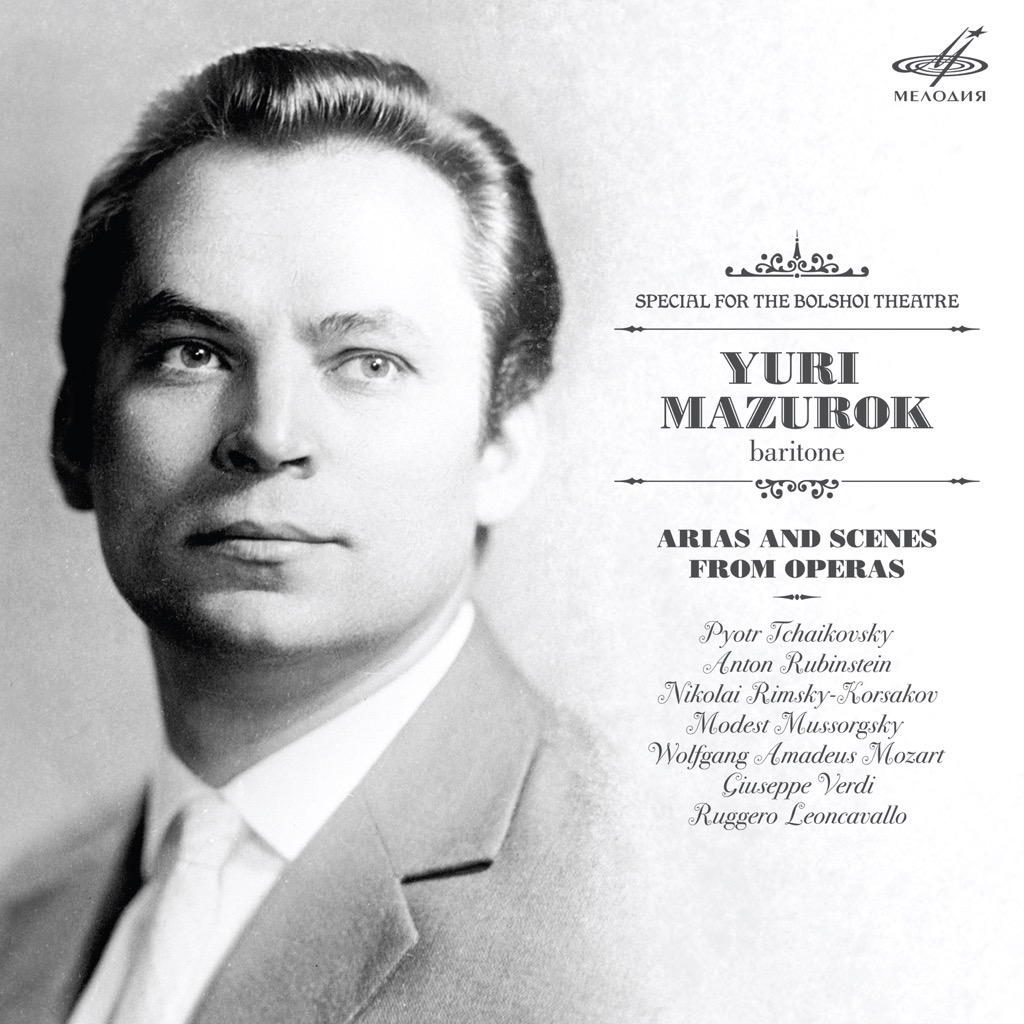 Другой апрельский релиз фирмы «Мелодия» этого года – арии и сцены из опер в исполнении Юрия Мазурока (MEL CD 10 02393). Общее время звучания диска – около 60 минут (13 треков). Это сборник студийных записей, сделанных певцом в разные годы с Оркестром Государственного академического Большого театра СССР (дирижер – Марк Эрмлер). Самая «древняя» из них – 1966 года (второй романс Демона из одноименной оперы Рубинштейна), а наибольшее число записей осуществлено в 1971 году. В их числе – ариозо Мазепы из II акта одноименной оперы Чайковского, три фрагмента из опер Римского-Корсакова (ария Грязного из I акта «Царской невесты», песня Веденецкого гостя из «Садко», ариозо Мизгиря из «Снегурочки»), ария Дон Жуана из одноименной оперы Моцарта, два фрагмента из опер Верди (ария Ренато из III акта «Бал-маскарада», речитатив и ария Графа ди Луна из II акта «Трубадура») и пролог к «Паяцам» Леонкавалло.