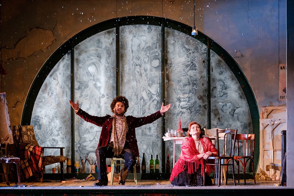 Высокий темп внутри действия задавал богемный квартет художников. Бас-баритон Эдвин Кроссли-Мерсер (Шонар) значительно отличался от этой великолепной четверки: он, помимо того, что пел, выделывал всякие кульбиты и танцевал. В харизматичности не уступал и Давиде Джусти (Рудольф). Его герой – с копной волос, как у мексиканца Вильясона, и дымным косячком в зубах – привлекал актёрской и вокальной естественностью. К тому же, голос певца идеально подходил для этой партии. Бархатистость и теплота тембра низкого и среднего регистров сочеталась с абсолютно свободными и невесомыми верхами.