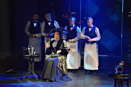 Больше напоминает сцену из оперы или оперетты, особенно если учесть голос Ларисы Костюк. Она обладает мощным, «мясистым» тембром меццо-сопрано, и низкий регистр звучит прямо-таки зловеще, но зачем такой угрожающий нажим, и главное — зачем столько вибрато в зонгах? В конце концов, есть же запись той самой Лотте Ленья на Youtube, и можно убедиться, что эстетика совершенно иная.