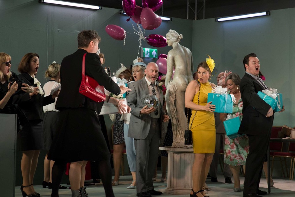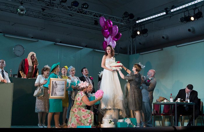 Тенор Пабло Стронг в роли Ответчика и бас-баритон Пол Шихан в роли Старшины присяжных идеально воплотили образы антигероев. Присяжные заседатели — почтальон, врач, профессор и прочий узнаваемый лондонский люд — сидели напротив красочно одетых свадебных гостей.