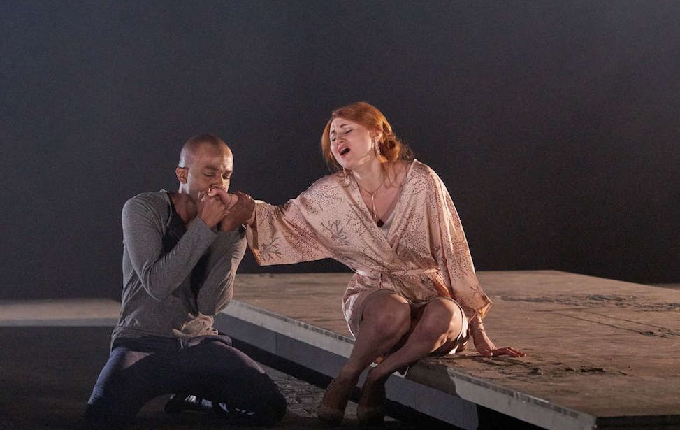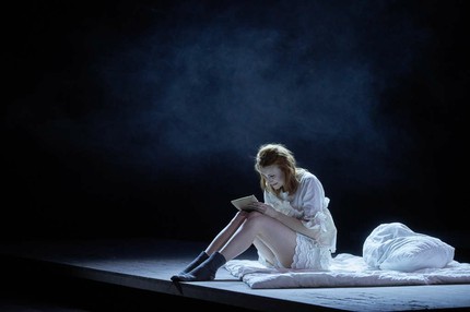 Интересными показались мне строгий прагматизм и техническая оригинальность сценографии австрийского художника Эрика Дроина: несмотря на то, что на сцене ничего нет, кроме покатых подвижных планшетов, сцена кажется живой.
