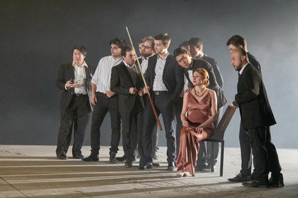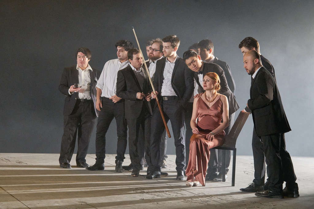 Костюмы, само собой, — безликое тряпьё (дизайнер тряпья — юная и милая Анна Брандштэттер). Так же отвратительно был одет хор и в фестивальной постановке Андреи Брэт десятилетней давности. Вряд ли за этим скрывается желание уязвить русский стиль: проблема намного глубже.