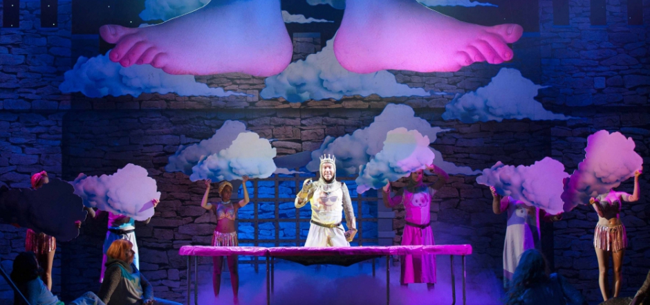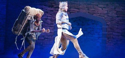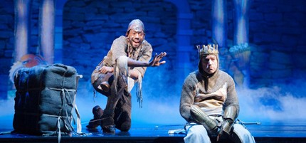 Разумеется, я не связывал свои ощущения с беспримерно восхитительной актёрской и вокальной самоотдачей ансамбля исполнителей, ядром которого стали Уве Крёгер (Король Артур), изысканная, хоть и хрипловатая Пия Дувес (Озёрная фея), Марк Зайтц (Сэр Робин), Саша Оскар Вайс (Сэр Ланселот), неподражаемый и феноменально голосистый Элиот Карлтон Хайнес (Пэтси), Аксель Майнхард (Сэр Бедевер) и др. Скорее меня напрягло обилие юмора «ниже пояса», который, честно говоря, вынуждал поёживаться.