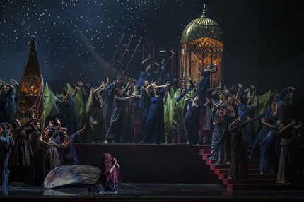 Если скачкообразное развитие сюжетной истории для оперного жанра почти закономерность, то оттеснение прямого конфликтного столкновения к середине спектакля (момент, когда «предатели» Лейла и Надир предстают перед народом) – не так привычно.