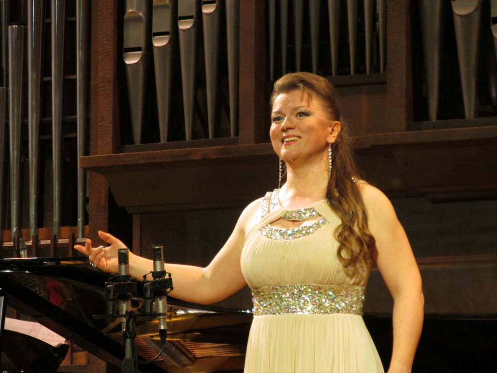 Совсем иное дело – проникнутый «алгеброй гармонии» классицизм Моцарта. В речитативе и арии Графини «E Susanna non vien! … Dove sono i bei momenti» из «Свадьбы Фигаро» певица продемонстрировала богатую палитру чувственности, отточенное до мельчайших нюансов вокальное мастерство. Романтическое бельканто XIX века было представлено восхитительным стилистически выдержанным исполнением речитатива и арии Джульетты «Eccomi in lieta vesta … Oh! Quante volte ti chiedo» из «Капулети и Монтекки» Беллини. На контрасте с просветленной щемящей меланхолией, присущей этому лучезарному композитору-романтику, виртуозно-искрящаяся каватина Розины «Una voce poco fa» из «Севильского цирюльника» Россини – известный образец композитора особого, неподражаемого cтиля бельканто! – поставила в финале первой части вечера обнадеживающе яркую, жизнерадостную точку.