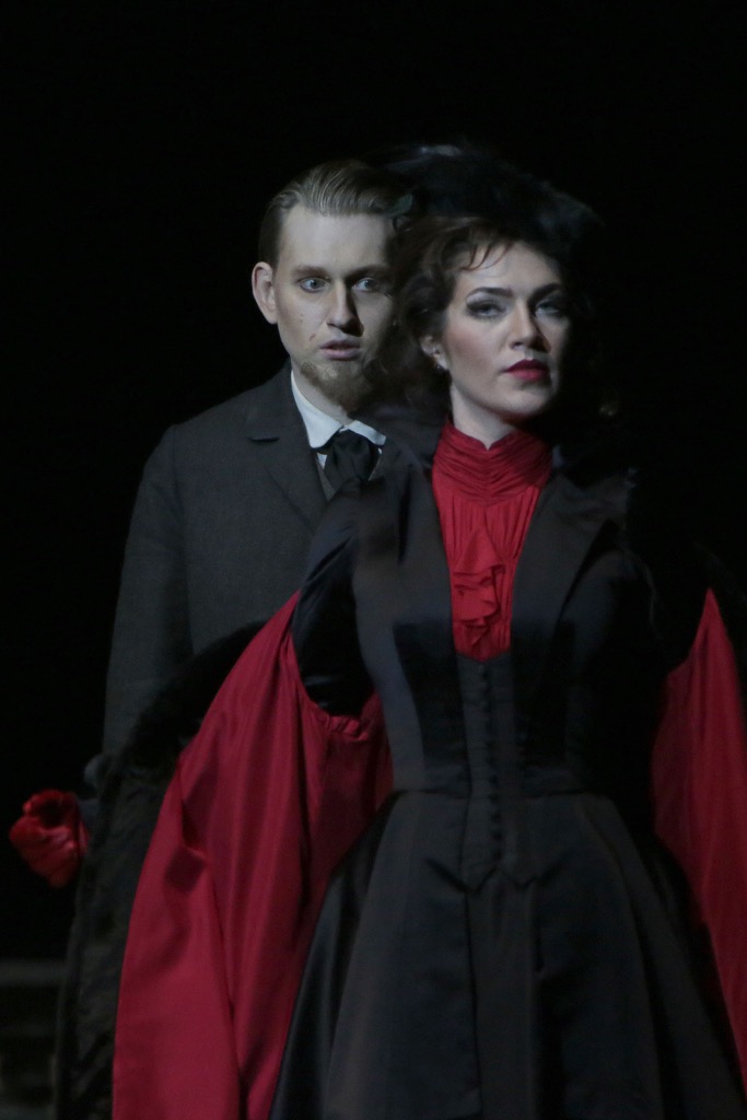 В команде проекта – сценограф Семен Пастух, художник по костюмам Галина Соловьева, художник по свету Дамир Исмагилов, видеосценограф Ася Мухина и режиссер по пластике Игорь Качаев. Польский дирижер-постановщик Михал Клауза (как и в «Доне Паскуале» Доницетти на этой же сцене) на высоте мастерства интерпретации и на сей раз. Филигранный оркестр, мощный мужской хор (хормейстер – Валерий Борисов) и, в целом, впечатляюще сильный ансамбль не просто солистов, но певцов-актеров, планку музыкального уровня также держат весьма высоко.