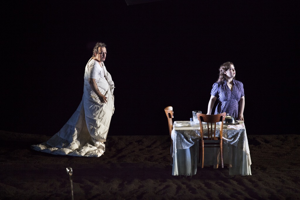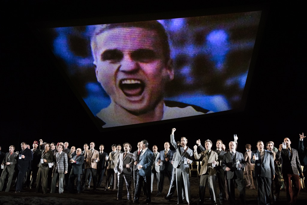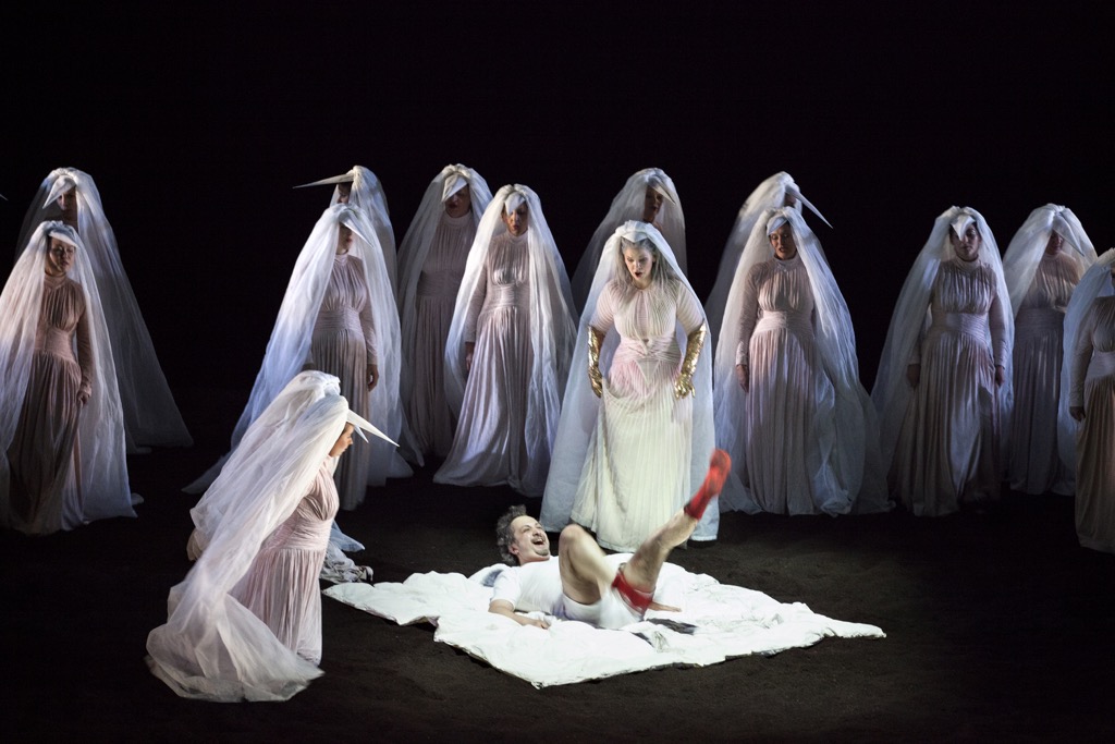 Почему? Да потому, что происходящее в сравнении с ними в постановке Оперы Фландрии никакой критики не выдерживает вообще, да и, честно говоря, описывать его, как принято в рецензиях, совсем не хочется, тем более что в течение четырех месяцев после выкладки в Интернет увидеть это сможет любой желающий. И всё же несколько общих штрихов к портрету спектакля дадим, но прежде, что называется, для протокола огласим состав постановочной команды. Итак, тандем с режиссером Дэниелом Кремером составили сценограф Аннета Муршец, художник по костюмам Констанс Хофман, художник по свету Шарль Балфур, видеохудожник Даррел Малони и драматург Люк Йоостен. Фигура драматурга в любой оперной постановке сомнительна уже по своей сути, но в этой вопрос «а что вообще тут сделал драматург?» хочется задать с особым пафосом.