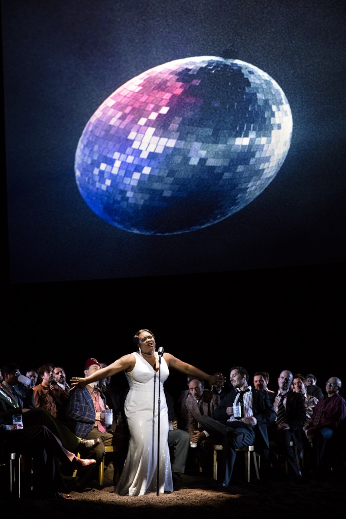 Навязчивая концертность спектакля усугубляется и массовыми хоровыми эпизодами, превращенными в сидячие «партсобрания» с проработкой главного героя, дерзнувшего помечтать о лучшем и стать не таким, как все. Частенько те или иные персонажи – нейтральные, как молодой гусляр Нежата, агрессивные, как пара настоятелей Новгорода, а также гонимый, терпящий над собой бесконечные издевательства изгой Садко – выходят к микрофонной стойке, чтобы спеть свои соло. Полный режиссерский бред – да и только! Персонаж-травести Нежата – теперь экстравагантная дородная дама, закрывающая собой практически всю амбразуру киноэкрана. В озерно-речных и подводной картинах место волшебства и романтических ассоциаций намертво заступил жесткий, лобовой практицизм. Из драматических по своему накалу сцен Садко и его молодой жены Любавы Буслаевны исчез загадочный и пленительный аромат тонко прописанной в музыке «русскости». Небольшая балетная сюита в картине подводного царства опущена, но если вспомнить о сомнительной в применении к этой опере эстетике западноевропейского танца модерн (а ничего другого в этих стенах всё равно бы не было!), то это, пожалуй, даже к лучшему.