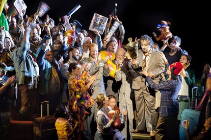 Опера Римского-Корсакова «Садко», жемчужина русского музыкально-былинного фольклора, конечно же, не трагедия, чтобы, как в древнегреческом театре, непременно ставить ее на котурны. Но это и не безудержный фарс, дающий повод для комикования, превращения постановки в «прикольный» – на молодежном сленге – китч, в развесистую клюкву. Между тем, от режиссерской концепции новой постановки «Садко», увидевшей свет в Опере Фландрии (совместной продукции со Словацким национальным театром в Братиславе), ничего, кроме кислого послевкусия, и не остается. Но на сей раз ехать на премьеру за тридевять земель даже не пришлось – корабль Садко с его дружинушкой хороброю, пришвартовавшись на причале «Оперной платформы», приплыл сам. Так что, по иронии судьбы, эпос без котурнов хотя бы на виртуальную платформу, но поставили!