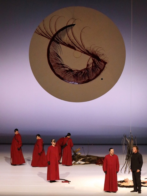 Оленьей кровью перепачкали всех, включая Тангейзера. Постоянные переодевания из белого в чёрное, из самурайско-куклусклановского в священно-мрачное становятся причиной того, что во многих сценах на сцене либо вообще никого, либо явно не те, кто должен быть по списку и по тексту. По этой же причине многие довольно важные реплики, имеющие в либретто адресата, направляются в зал, потому что те, кто им должен внимать, пошли переодеваться, чтобы снова появиться на сцене тогда, когда их поезд уже ушёл.