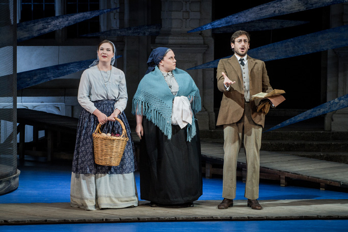 Стройная, элегантная, но, как и положено ей быть, колоритная Кабаниха (Энн Мейсон) и ее «партнер» Дикой (Михаил Светлов) «нарисовали» безжалостную картину той эпохи. Русский бас Михаил Светлов звучал сочно, весомо. Органичной парой оказались Варвара (Клэр Пресланд) и Кудряш (Поль Кюриевич) — свободные, раскованные, влюбленные, счастливые!