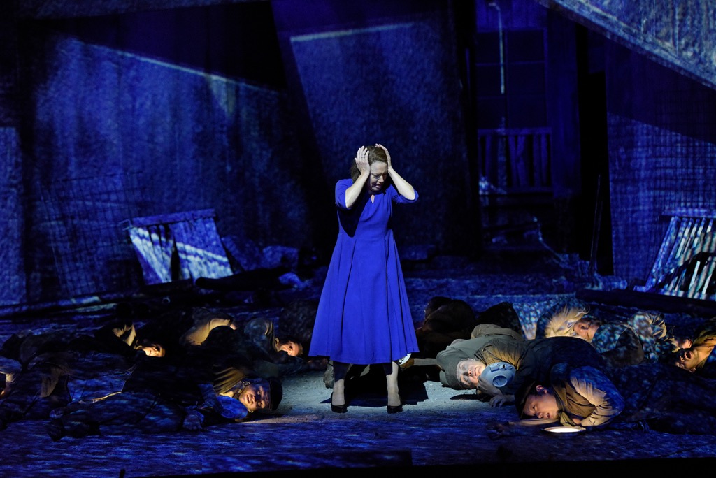 Мрачный колорит безбожия и разложения находит отражение и в грандиозной сценографии Харальда Б. Тора: гигантская многоэтажная конструкция вызывает аллюзии как на незавершённую стройку (коммунизма?), так и на заброшенное место недавних военных действий, и даже на последствия стихийного бедствия. Видеоинсталляции, сопровождающие сексуально-невротические видения главной героини, оживляют этот урбанистический пейзаж, напоминая о мутной глубине подсознания и животных страхов и страстей, вихрем несущих главную героиню к погибели.