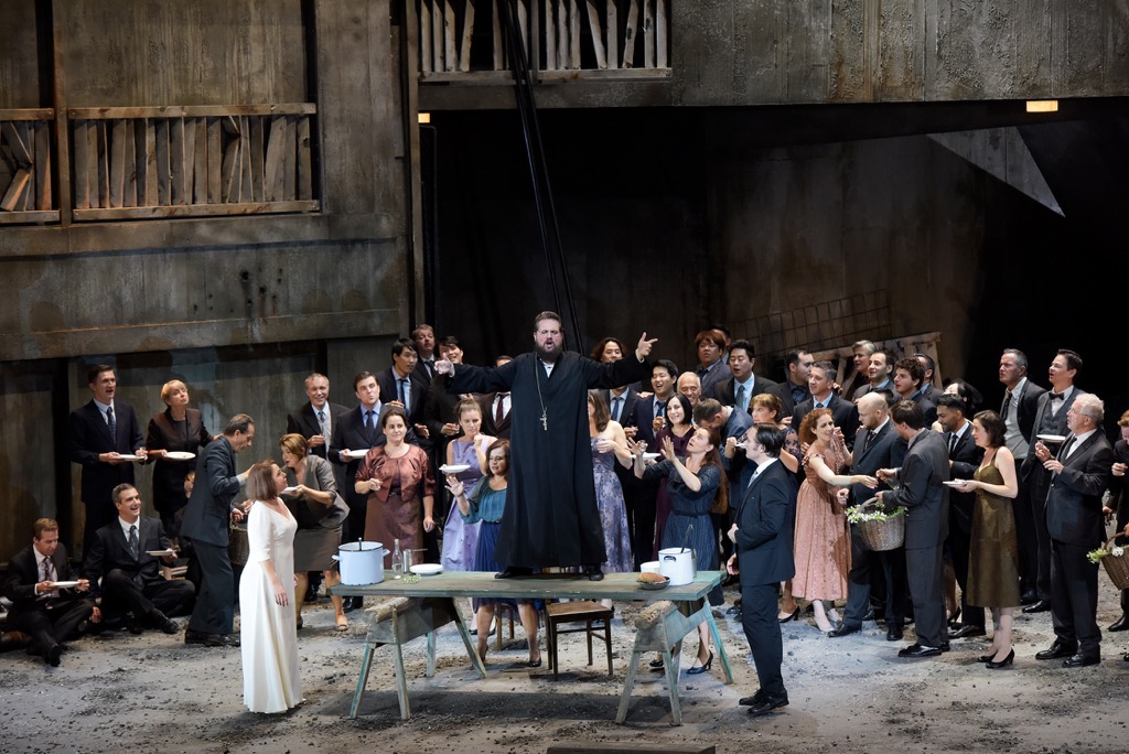 Сергей в исполнении американского тенора Брэндона Йовановича действительно выглядит похотливым кобелём, и здесь жирность сценических красок была уместной и сработала на образ. Звук у певца в целом плотный, тембр подходящий, фразировка корректная, игра виртуозна, страсть вульгарна, — словом, форменный подонок; полный восторг. И тем не менее, остальным персонажам оперы повезло ещё больше: их исполнял многочисленный русский оперный десант.