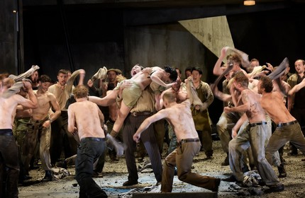 В опере Шостаковича все партии сложны физически: за исключением пары эпизодов, просто стоять и петь не получается, и, какой бы ни была постановка, певцам приходится изрядно шевелиться. При этом партии довольно диапазонные, и сказать, что именно в «ЛММУ» достаточно одной театральной харизмы, чтобы не надрываться горлом, нельзя: все сугубо мелодраматические «спецэффекты» (хрипы, визги, крики и т.п.) производятся здесь сугубо вокальными средствами.