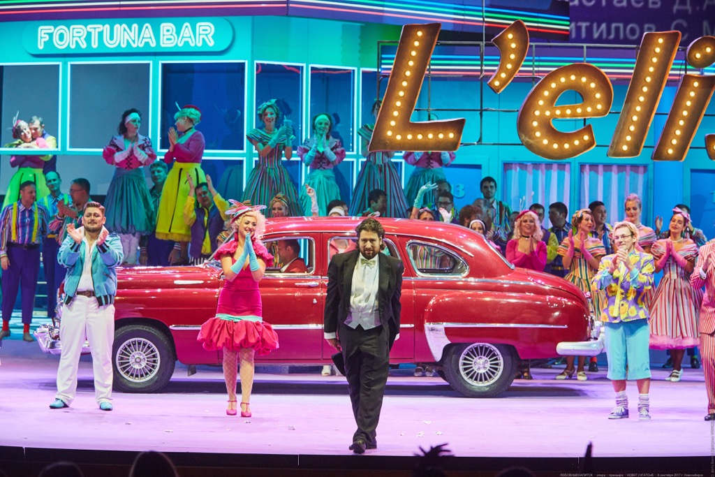Новый незаштампованный взгляд на этот «маленький» оперный шедевр Доницетти дает невероятный простор для наслаждения именно музыкой. Однако при этом на сцене кипят подлинные артистические страсти, а по части мизансцен спектакль – и сплошная увлекательная феерия с блеском неоновых огней, и изысканно-тонкая пародия на лакировано-парадную пышность массового кинематографа, что для привлечения к зрелищам на большом экране нередко становится самоцелью.