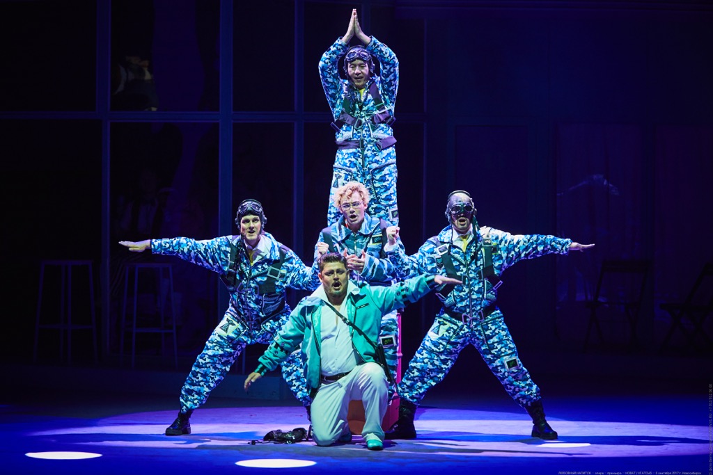 На его страницах об «оперной дегустации», или «дегустации бельканто», нам поведал режиссер, автор художественной концепции. То, что на сей раз избрана форма «оперного мюзикла», безо всяких обиняков задекларировал сценограф, художник по свету и видеодизайнер Сергей Скорнецкий. Идею выбора стиля пин-ап популярно разъяснила совершенно изумительный художник по костюмам Жанна Усачёва. А раз мюзикл, то, естественно, не обошлось без хореографа: обеспечение сценической пластики спектакля взял на себя Артур Ощепков.